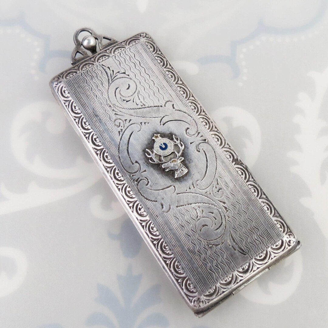 Antique Order of the Elks Engraved Sterling Silver Locket Pendant Fob 2 ...