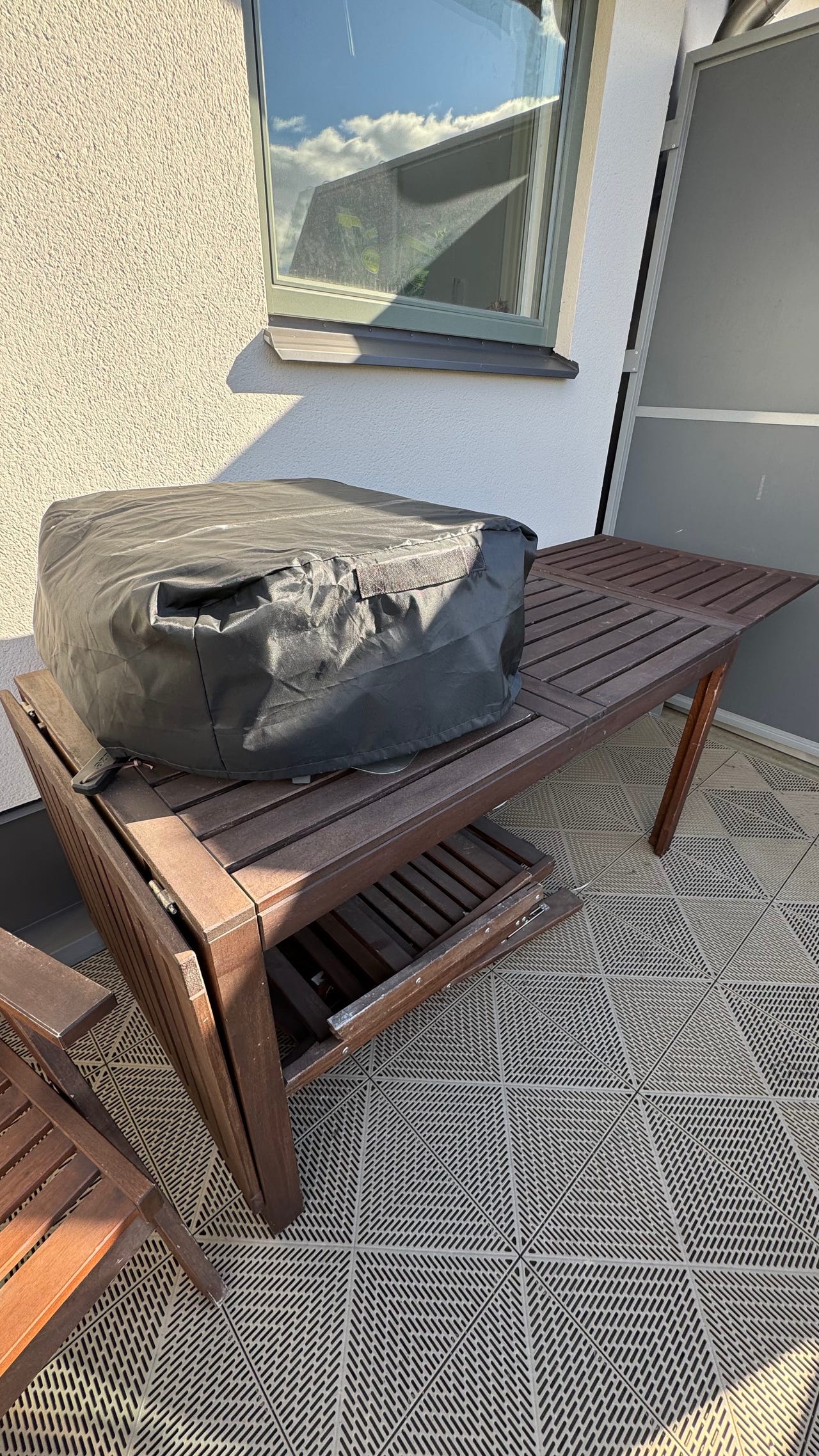 Matgrupp utomhus trä bord och stolar brun | Blocket