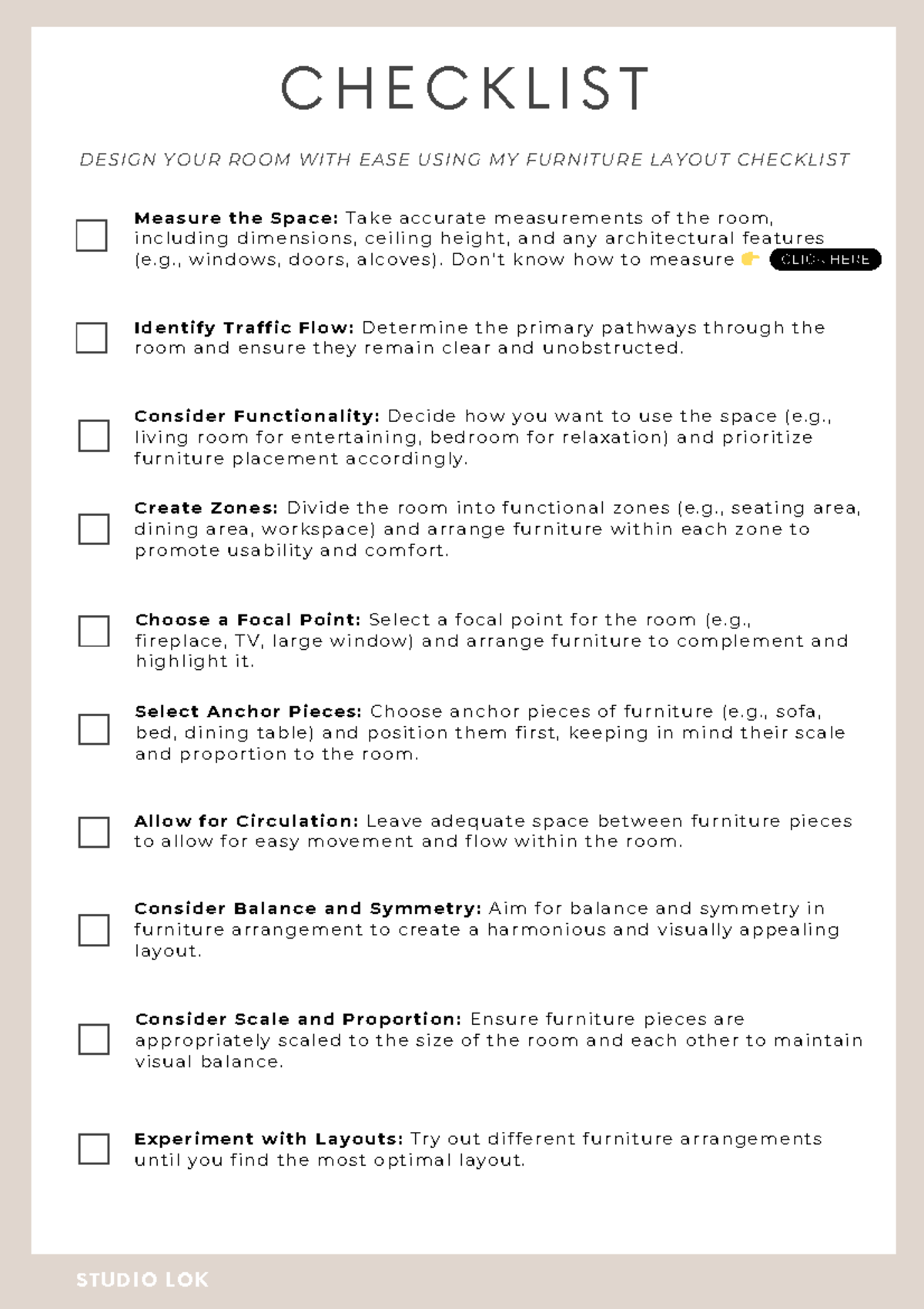 CHECKLIST: DESIGN YOUR ROOM WITH EASE - FURNITURE LAYOUT - Studocu