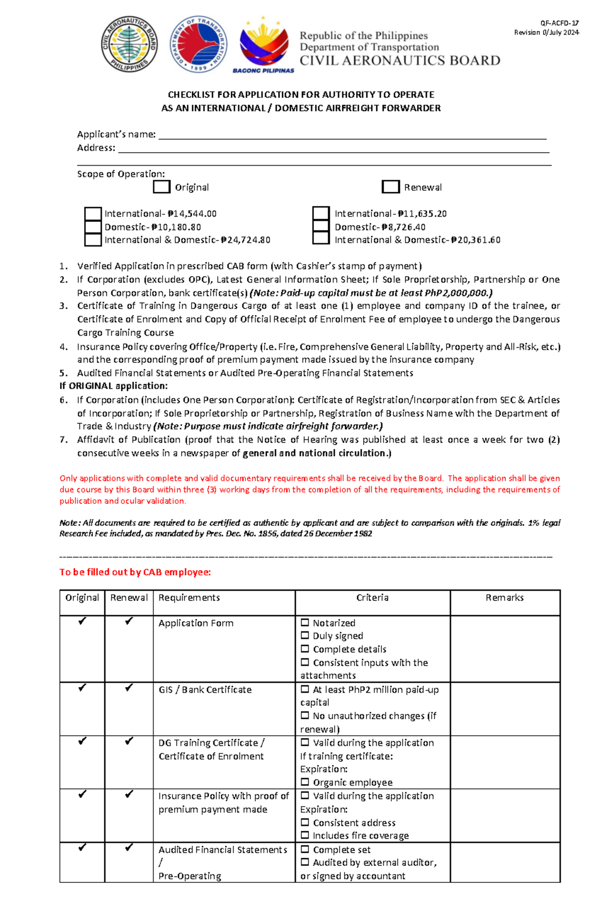 Revision 2024 CHECKLIST FOR AUTHORITY TO OPERATE AS AIRFREIGHT ...