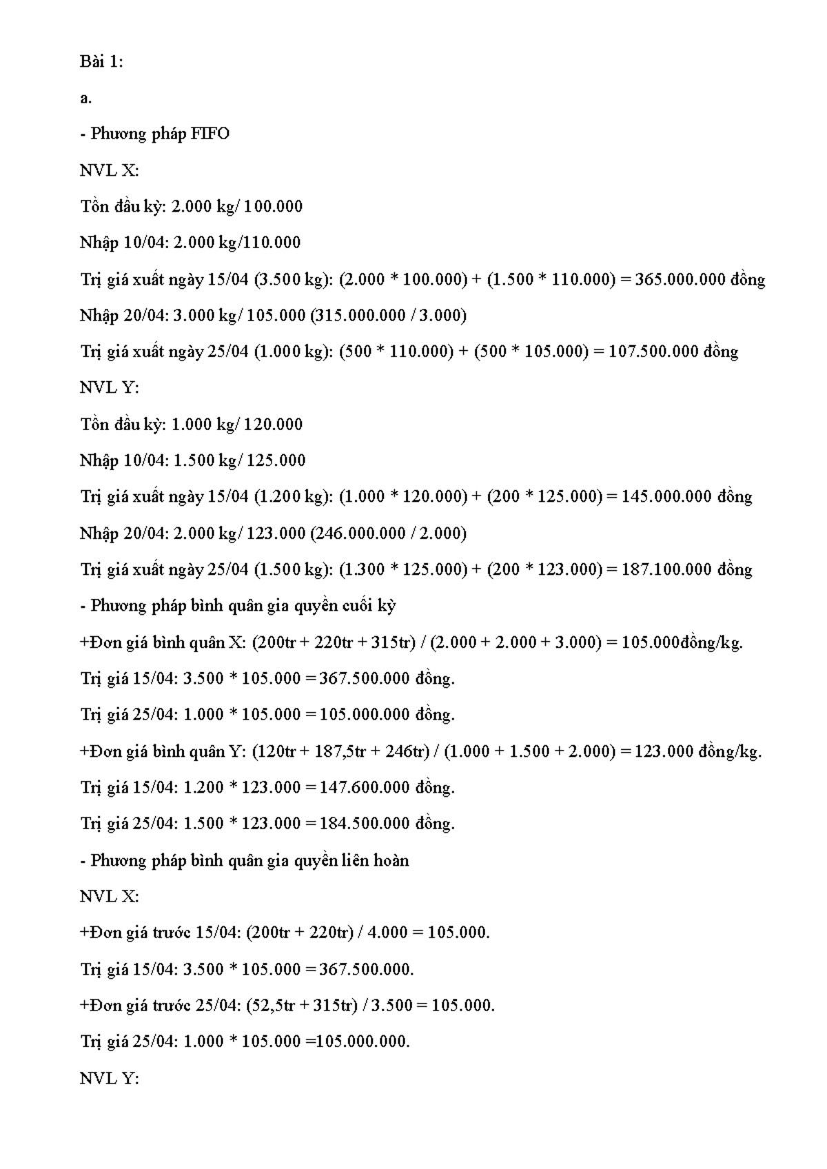 Bài tập chương 8: Phương pháp FIFO và Bình quân gia quyền NVL - Studocu