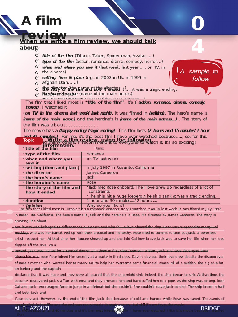 Bac2 : Film Review Writing, Simplified Planning & Practice - MoroccoEnglish