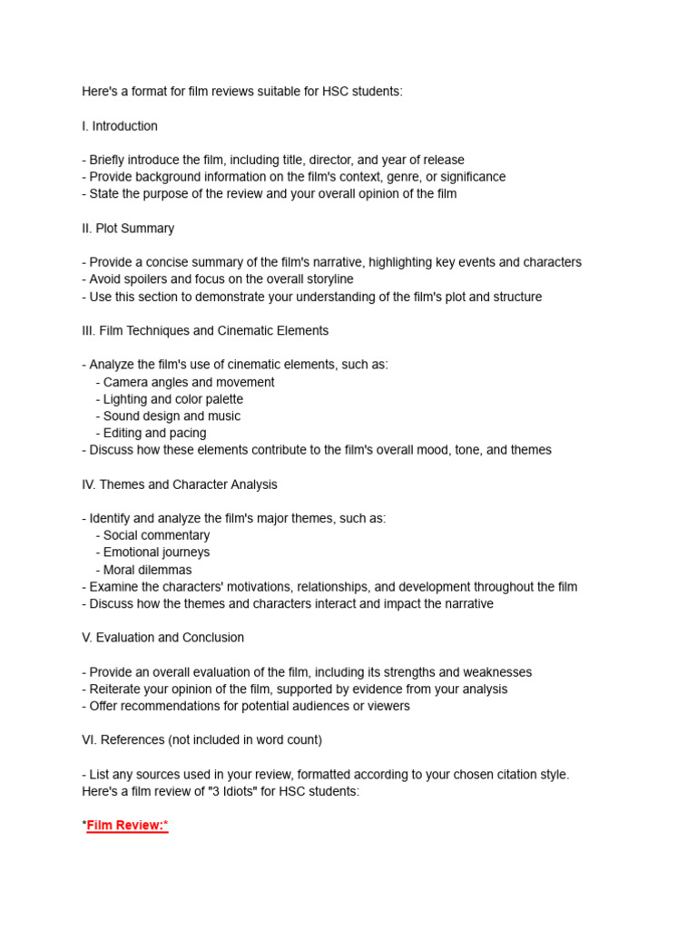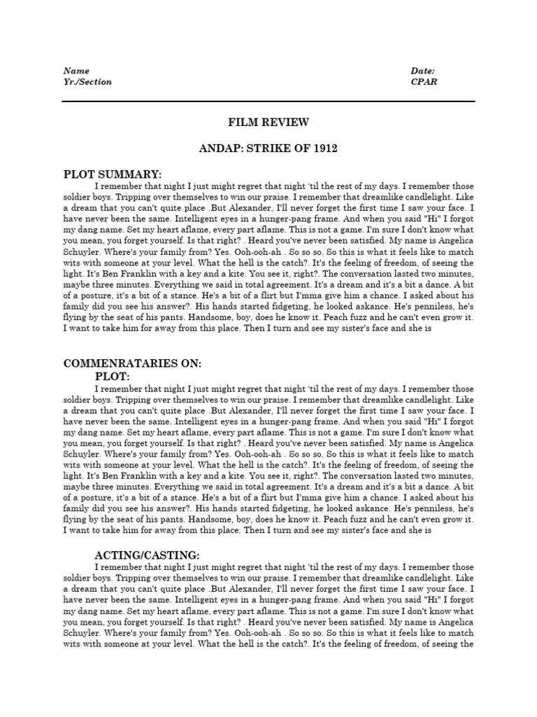 Film Review Examples For Class 11 at Sebastian Moses blog