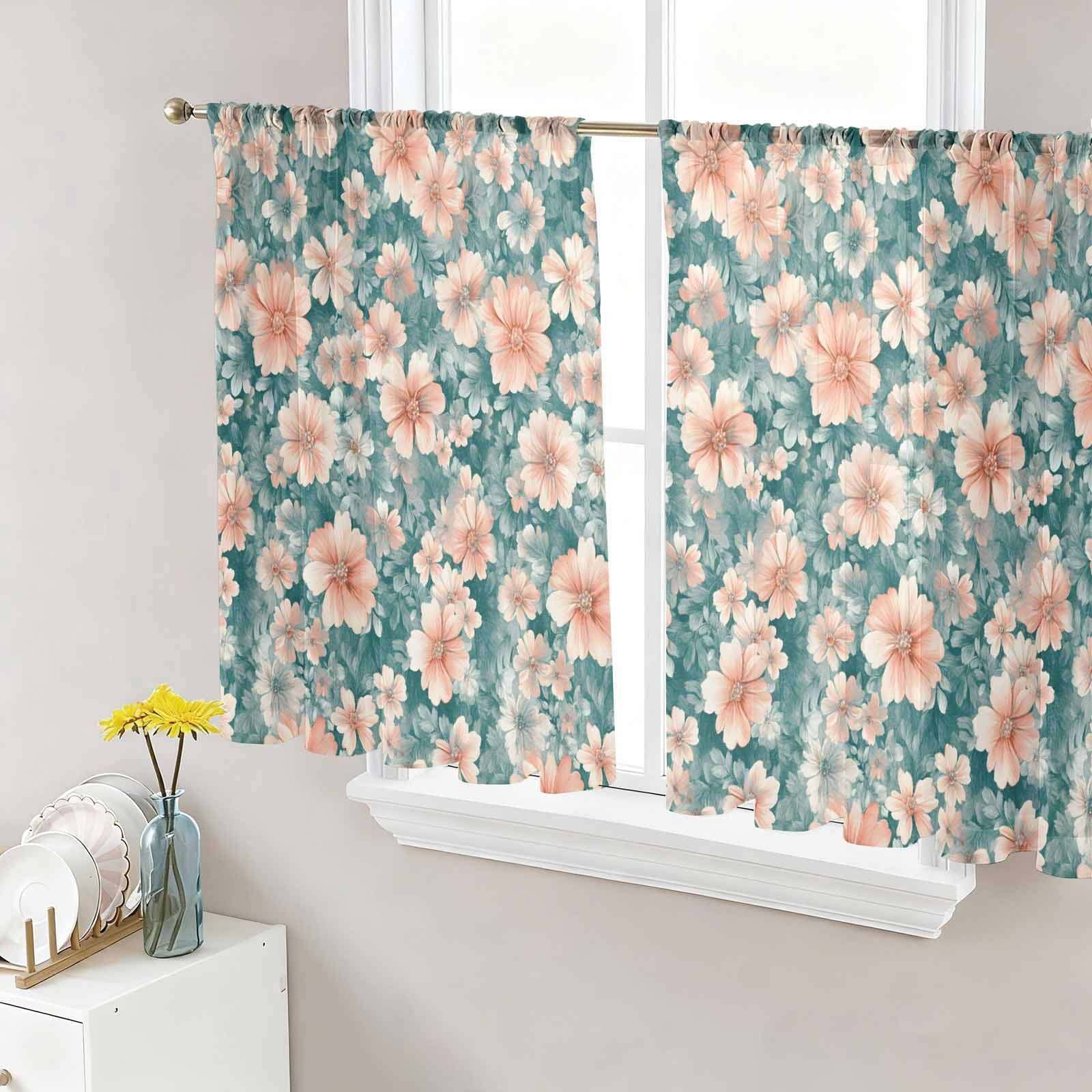 Botanical Flowers Sheer Curtains 45 Inches Length 2 Panels Set, Window ...