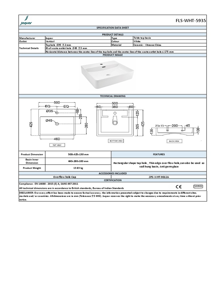 Jaquar Florentine Under Counter Basin | PDF | Pallet | Sink