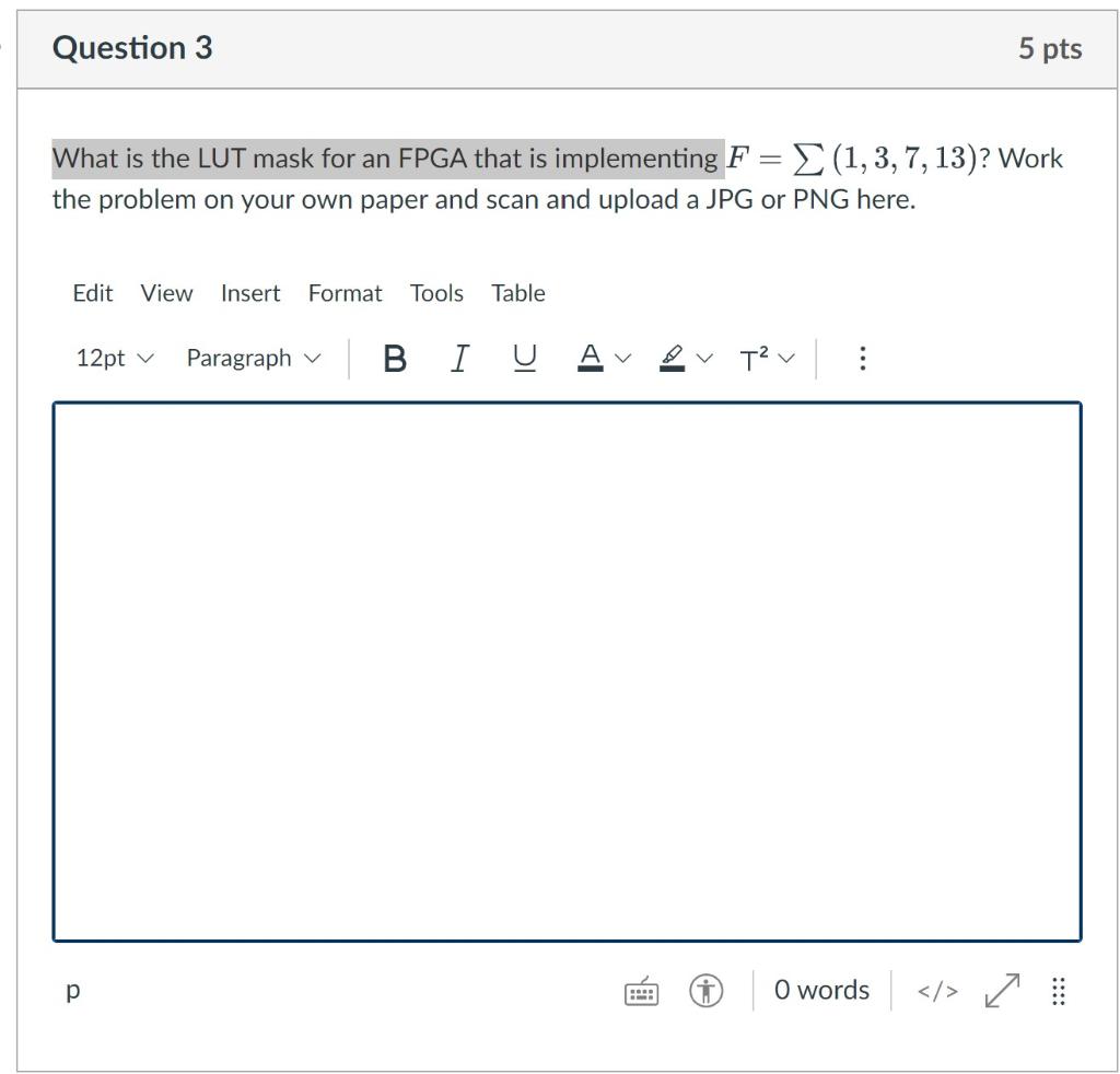 Solved Question 3 5 pts What is the LUT mask for an FPGA | Chegg.com