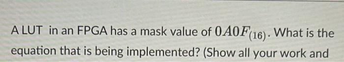 Solved A LUT in an FPGA has a mask value of 0A0F(16). What | Chegg.com