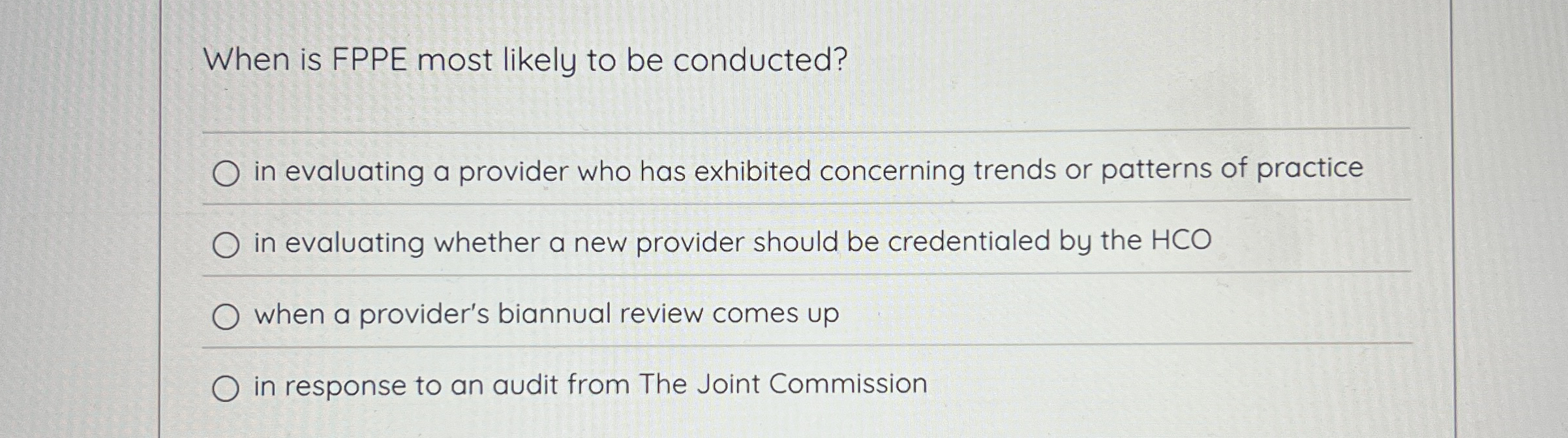 Solved When is FPPE most likely to be conducted?in | Chegg.com
