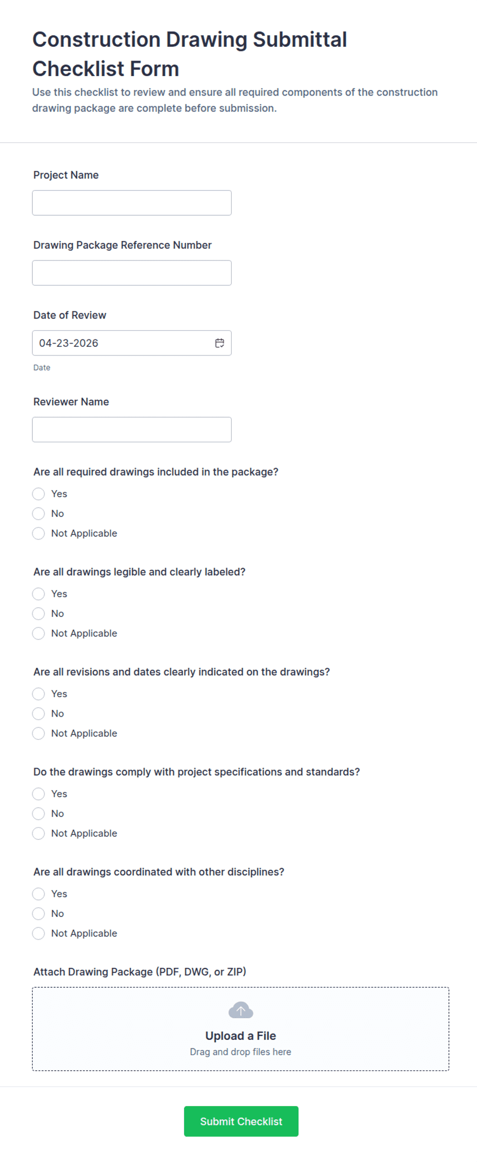 Construction Drawing Submittal Checklist Form Template | Jotform