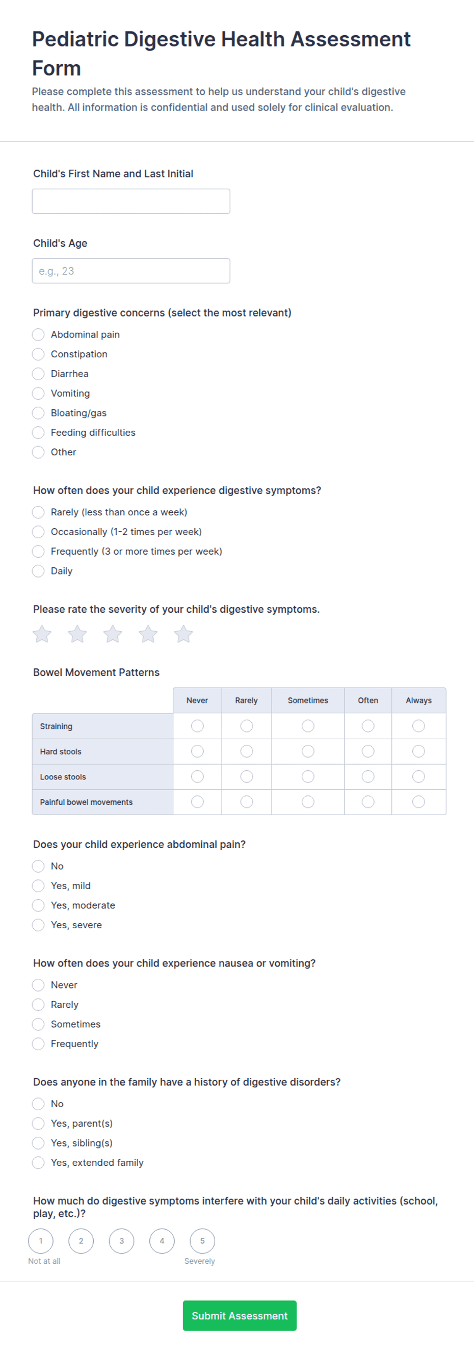 Pediatric Digestive Health Assessment Form Template | Jotform