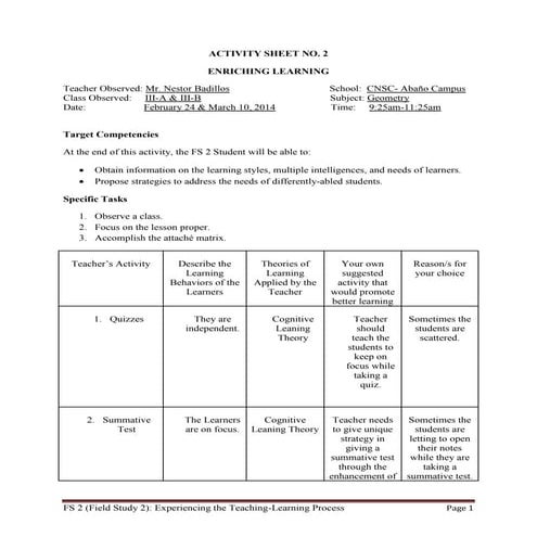 FS-2-Activity-2 | PDF | Learning | Teachers