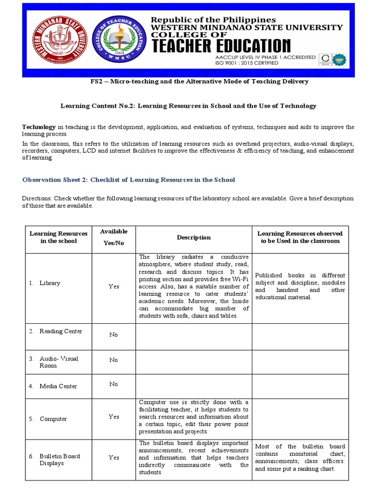 FS 2 Activity 2 | PDF | Learning | Teachers