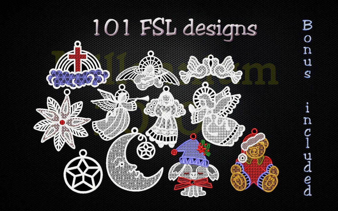 Fsl-free Standing Lace Embroidery Set 3 With 6 Ornament | Etsy