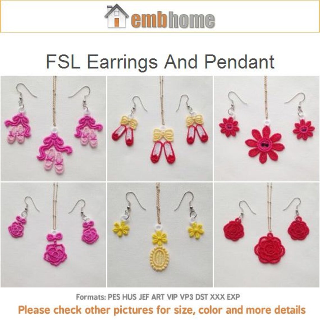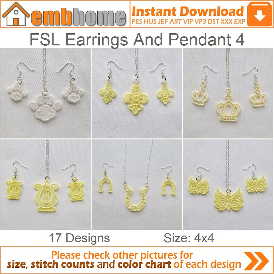 FSL Earrings and Pendant Free Standing Lace Machine Embroidery Designs ...