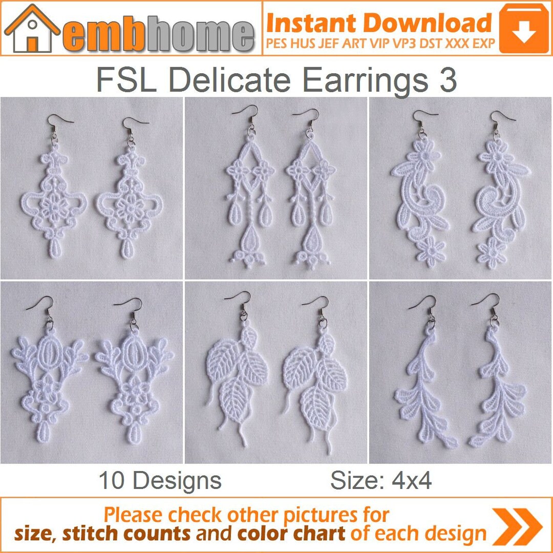 FSL Delicate Earrings - Free Standing Lace Machine Embroidery Designs ...