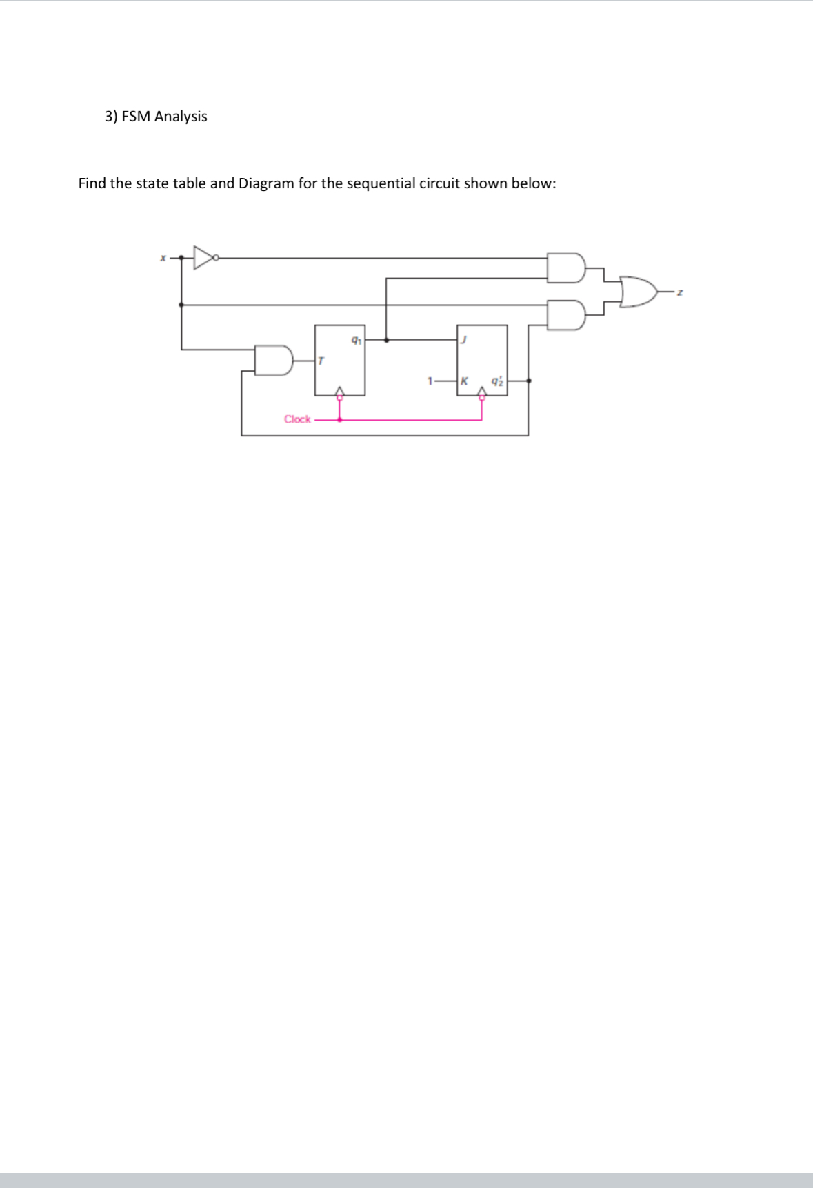 Solved FSM Analysis Find the state table and Diagram for the | Chegg.com