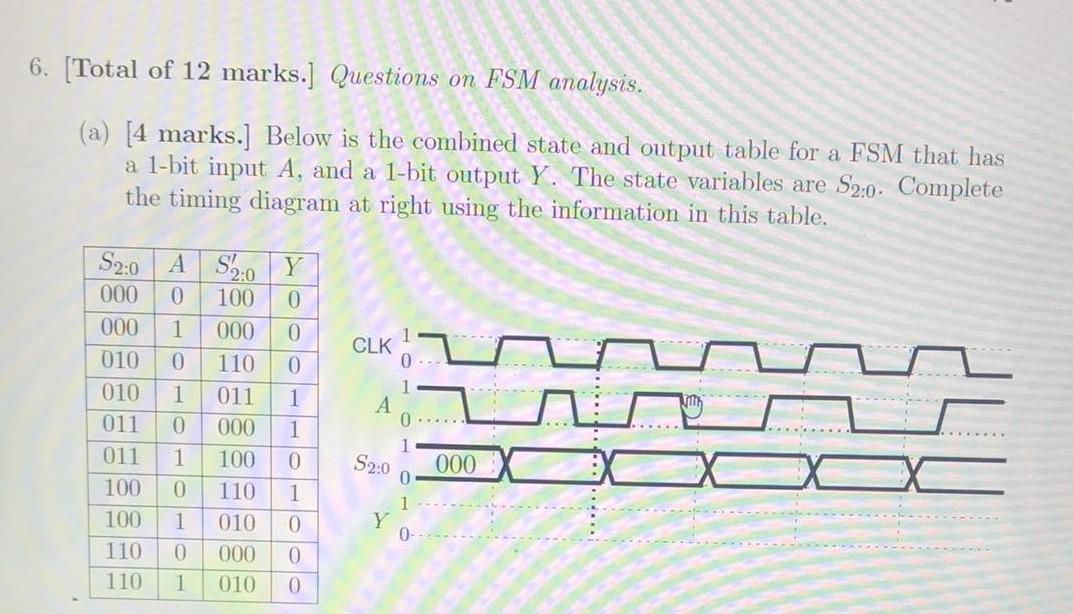 Solved 6. [Total of 12 marks.] Questions on FSM analysis. | Chegg.com