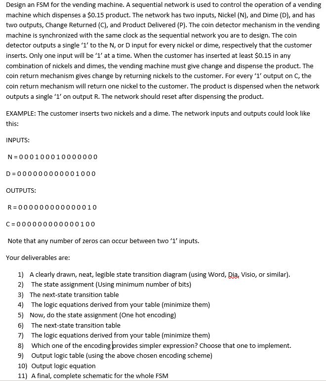 Solved Design an FSM for the vending machine. A sequential | Chegg.com