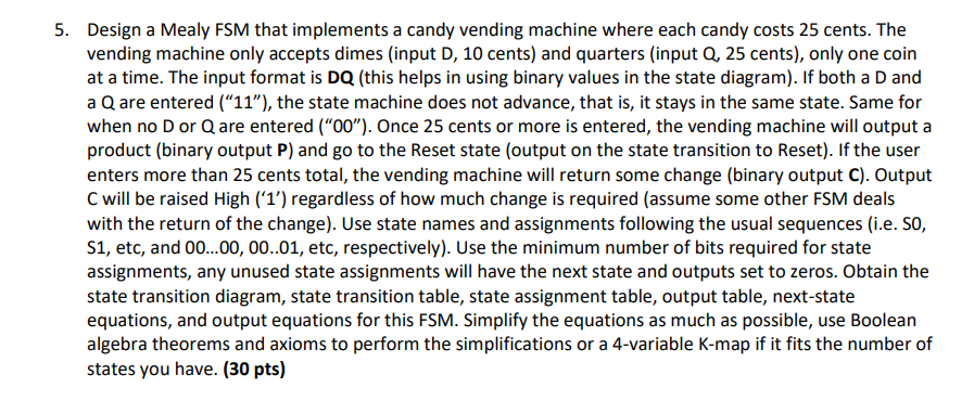 Solved 6. [FSM Design] A vending machine accepts nickels ( 5 | Chegg.com
