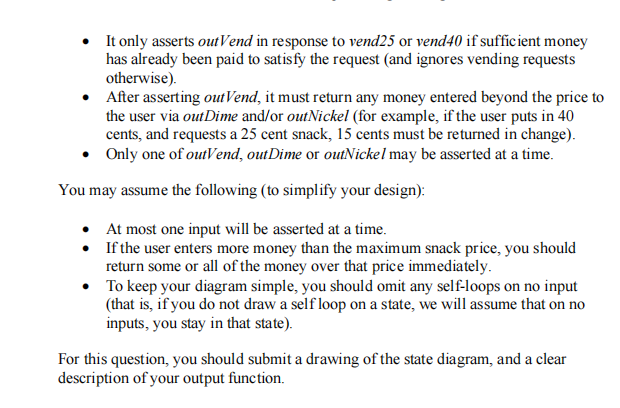Solved model this system as a FSM. Vending Machine allows | Chegg.com
