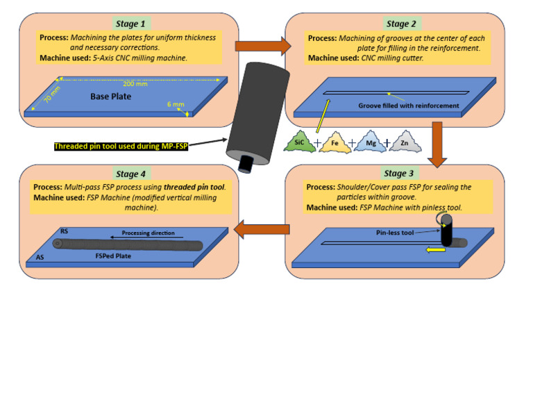 Schematic view of different stages of FSP (a) Groove prepared on the ...