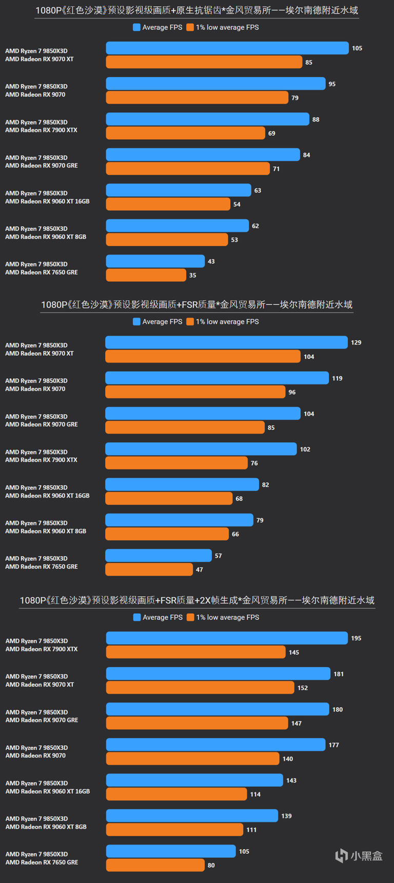 《红色沙漠》7款A卡实测:FSR 4.1下9070 XT跑4K60画质好又稳