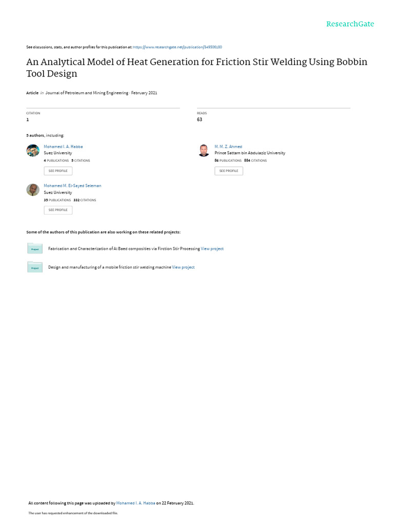 Heat Generation Model for Bobbin FSW | PDF | Mechanical Engineering ...