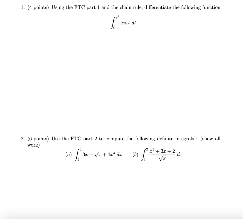 Solved 1. (4 points) Using the FTC part 1 and the chain | Chegg.com