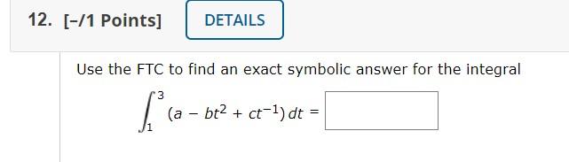 Solved 12. [-11 Points] DETAILS Use the FTC to find an exact | Chegg.com
