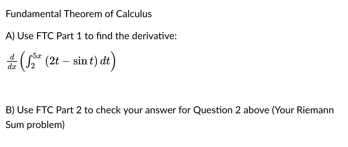 Solved Fundamental Theorem of Calculus A) Use FTC Part 1 to | Chegg.com
