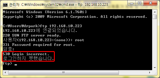 [Solaris 10] FTP root 계정으로 접속하는 방법, 530 Login incorrect, FTP connection ...