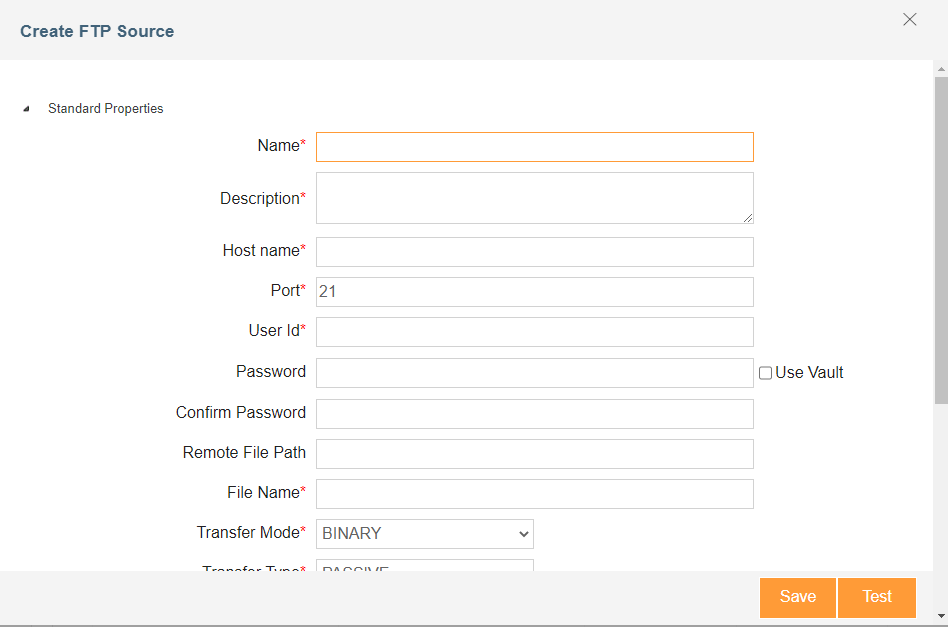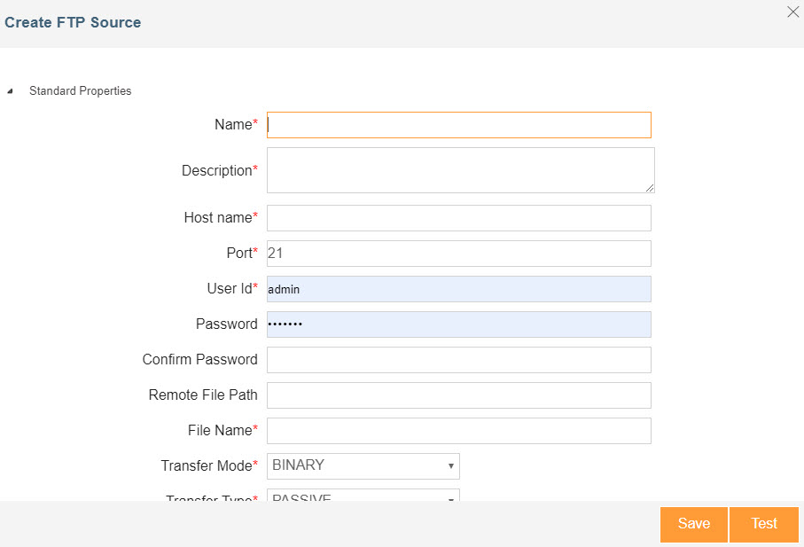 Create an FTP site source in Jitterbit Design Studio