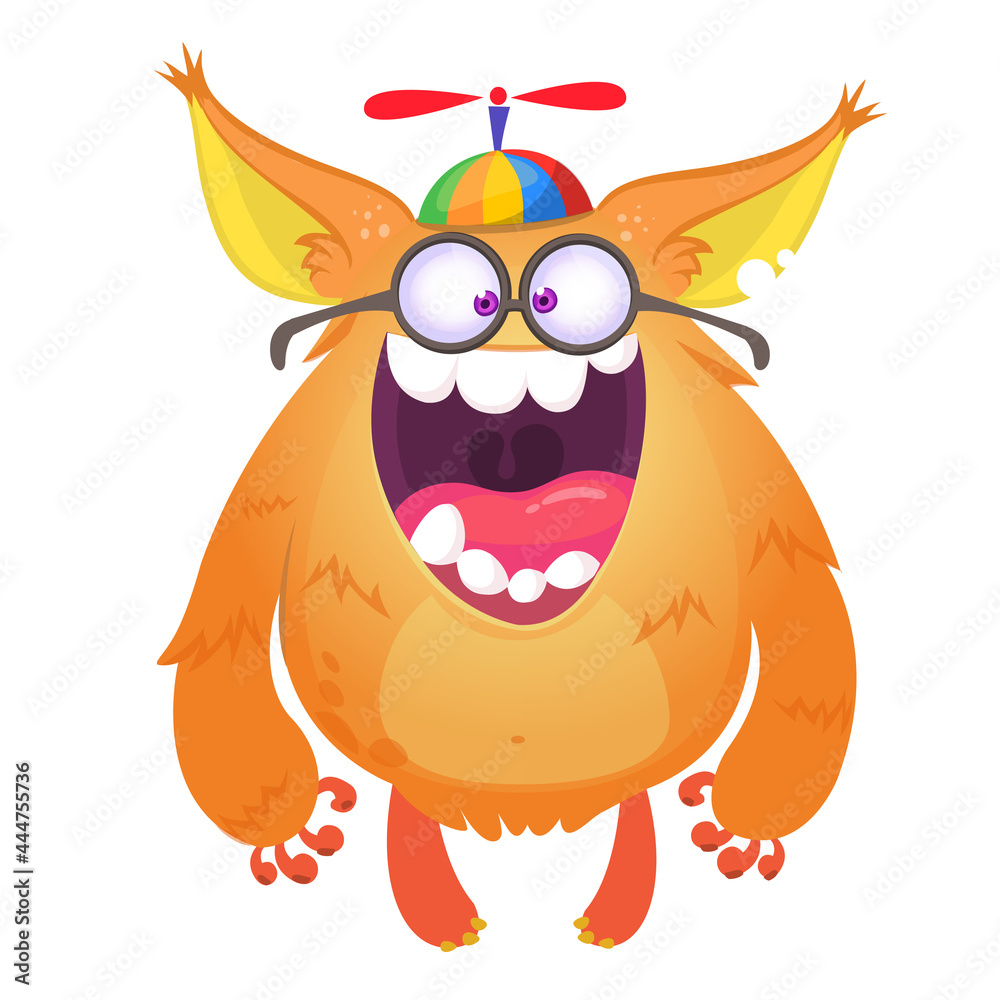 Funny cartoon furry monster character. Illustration of cute and happy ...