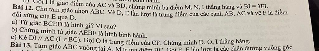 Cột 1 là giao điểm của AC và BD, chứng minh ba điểm M, N, I thẳng hàng ...