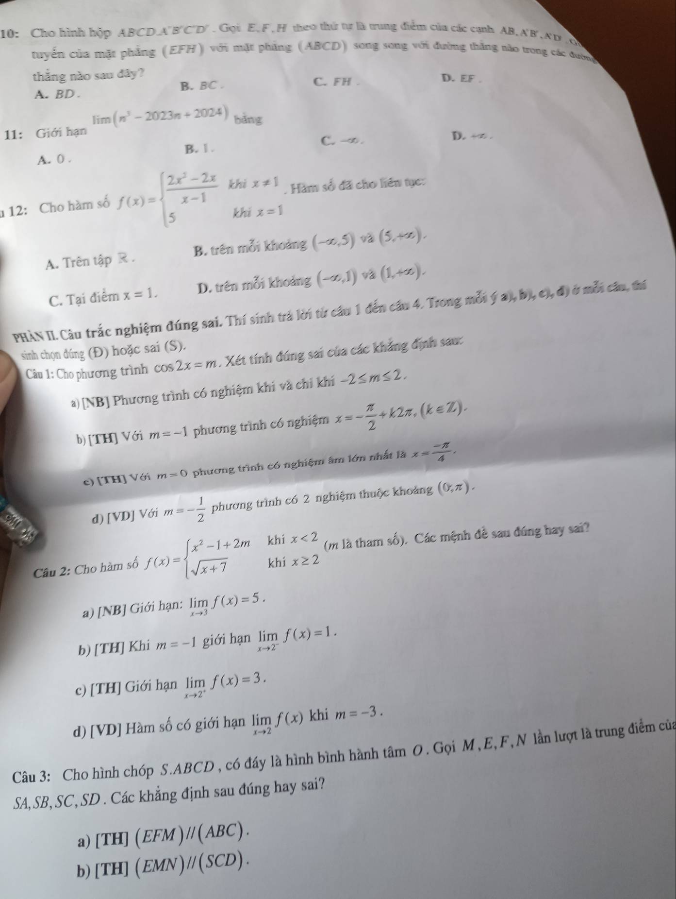 Giải quyết:10: Cho hình hộp ABCD A'B'C''D' . Gọi E.F.H theo thứ tự là ...