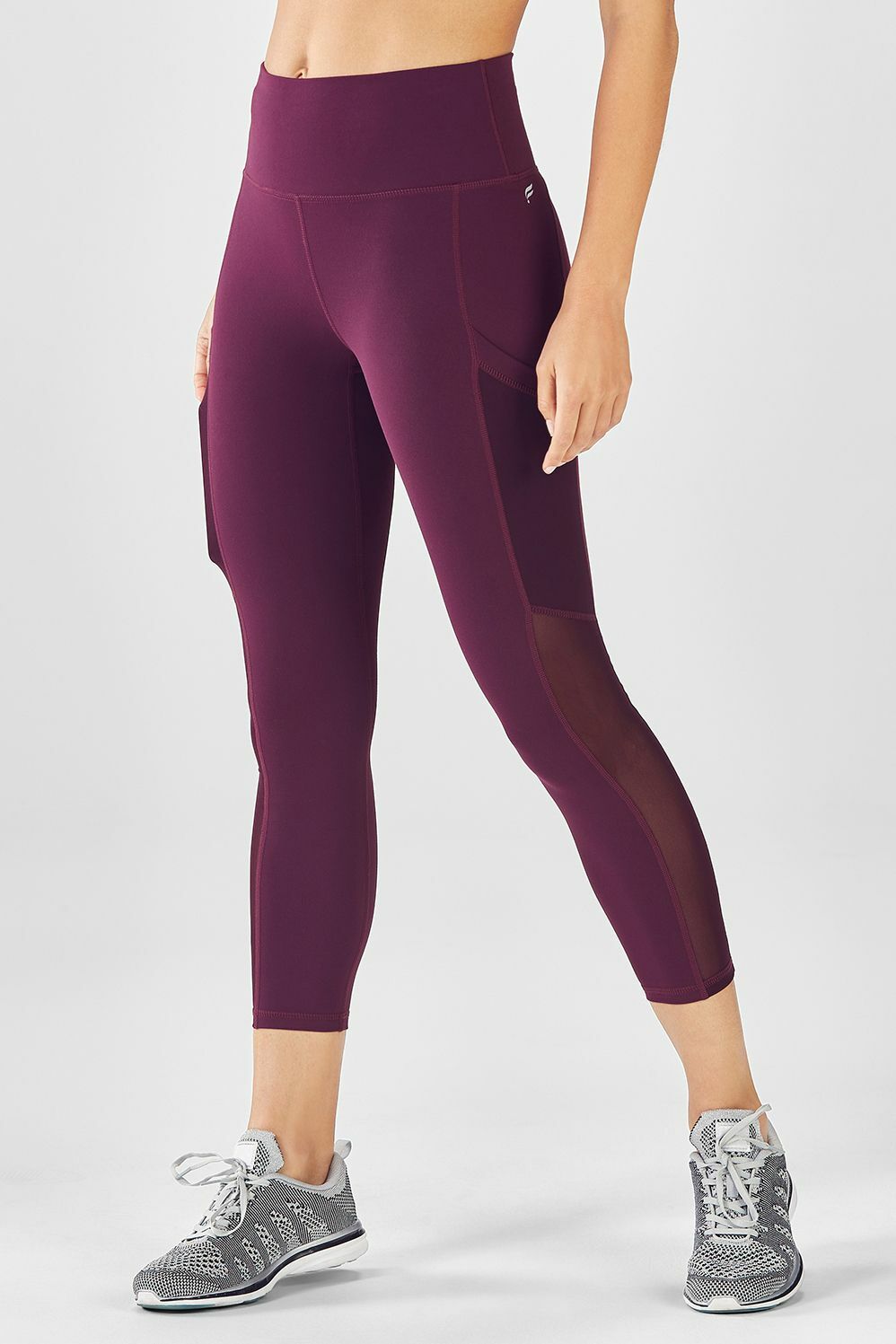 FABLETICS MILA MESH POCKET CAPRI DESIGNER M L XL NWT PHONE BURGUNDY ...