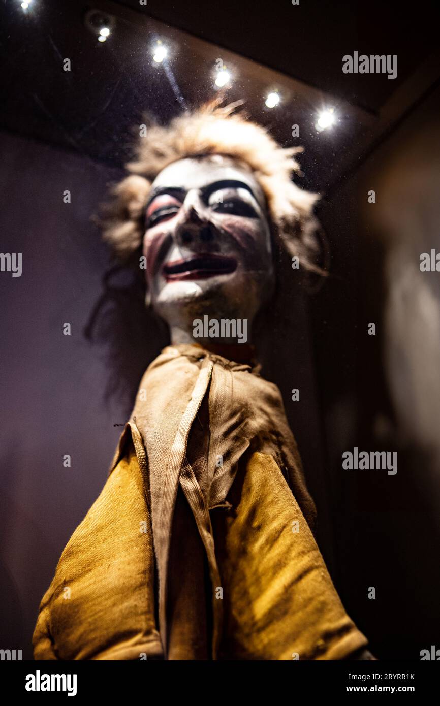 Close up of the face of an unpleasant puppet at the Puppets Museum in ...