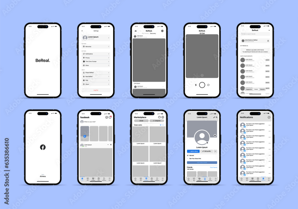 Premium Vector | Bereal and facebook interface set screen social media ...
