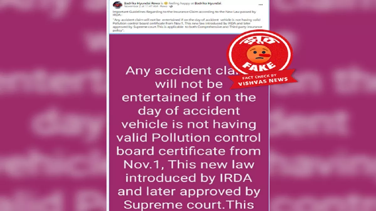 Fact Check: वैध पीयूसी सर्टिफिकेट गाड़ी के इंश्योरेंस क्लेम के लिए नहीं ...