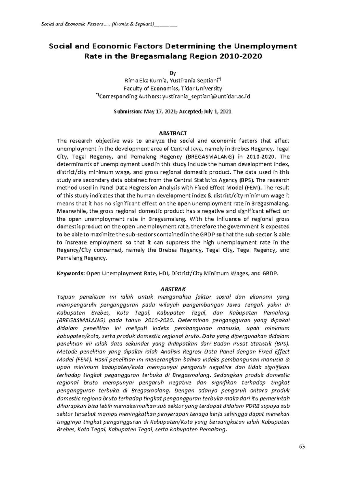 Social and Economic Factors Influencing Unemployment in Bregasmalang ...