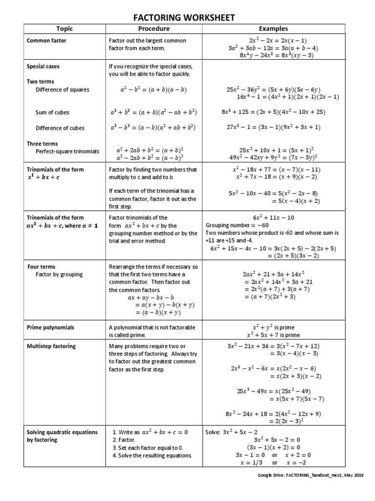 Math Note - FACTORING WORKSHEET | PDF | Factorization | Mathematics