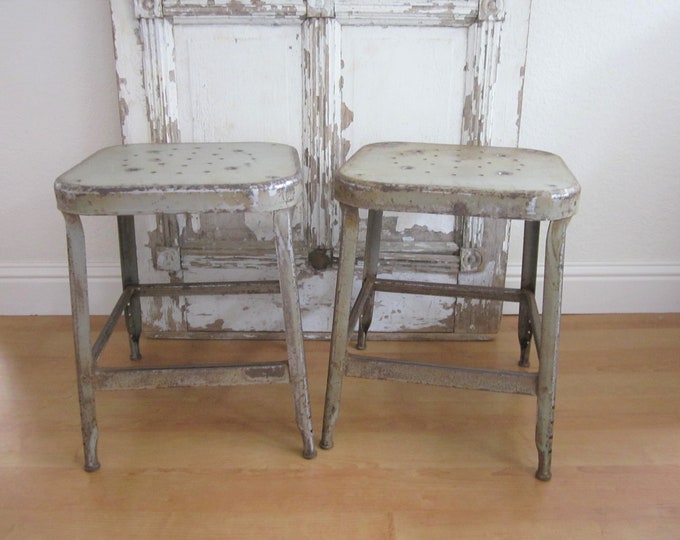 Vintage Lyon Industrial Stools, PAIR, Grey, Metal Factory Stool, Auto ...