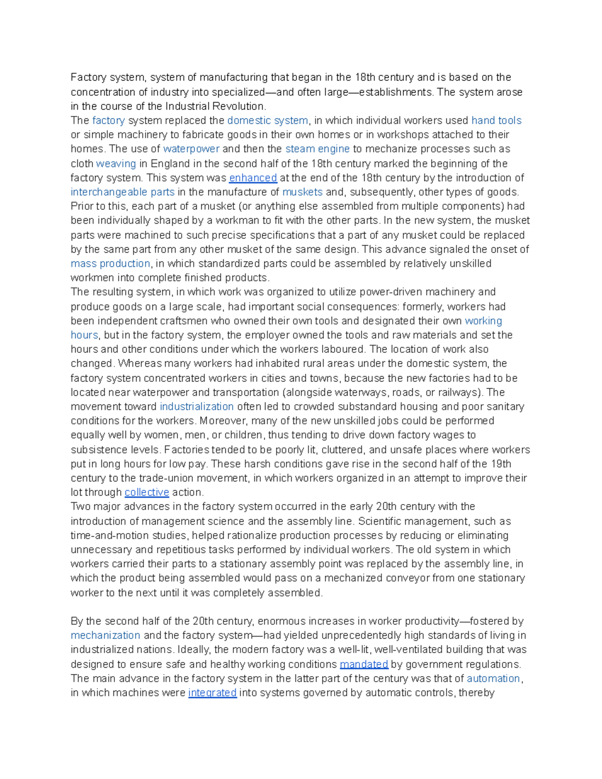 Factory System and Its Evolution During the Industrial Revolution - Studocu