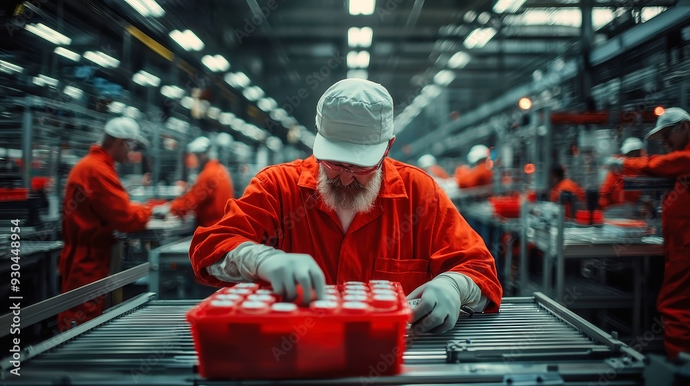 Factory Workers Assembling Products, Dynamic manufacturing process ...