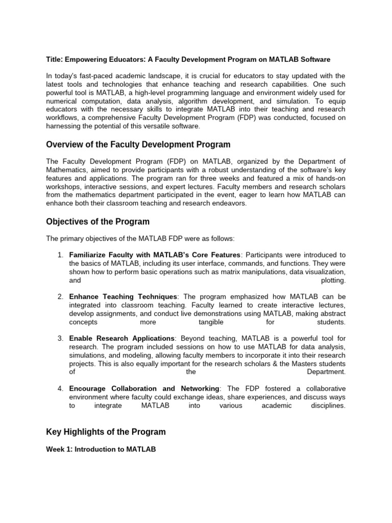 A Faculty Development Program on MATLAB Software | PDF | Matlab ...