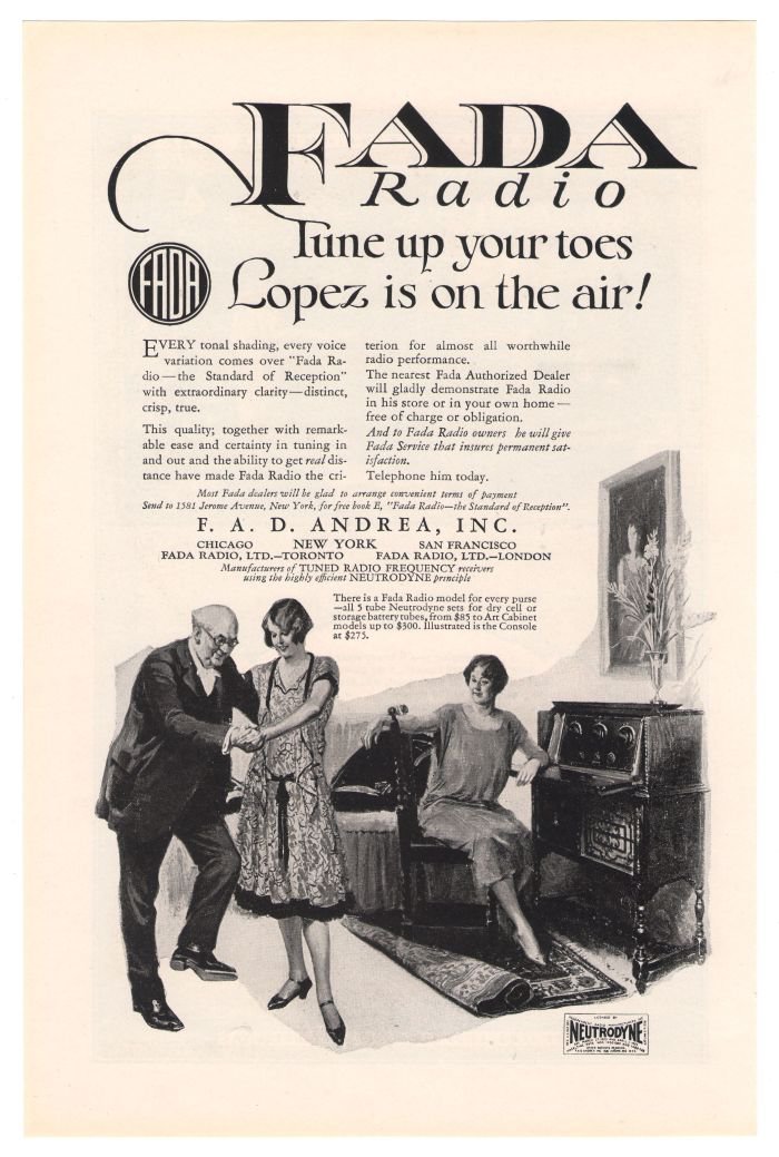Fada Radio Vincent Lopez Neutrodyne FAD Andrea 1920s Advertisement ...