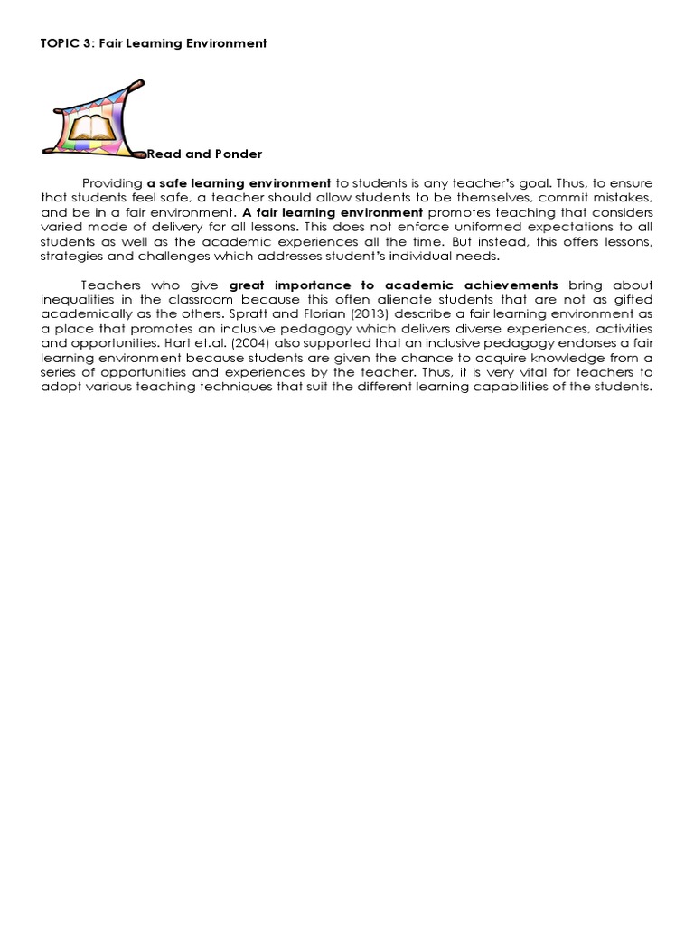TOPIC 3 Fair Learning Environment | PDF | Teachers | Learning