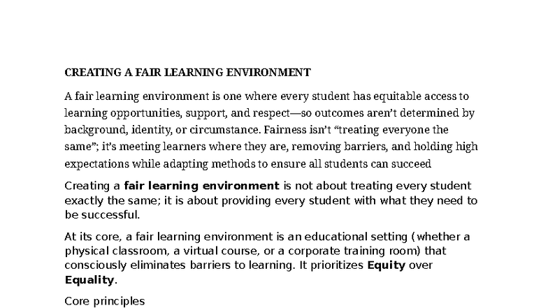 Creating a Fair Learning Environment: Strategies for Equity | Course Hero