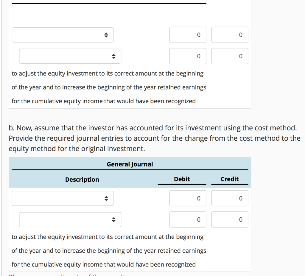 Solved Change from the fair method to the equity method | Chegg.com