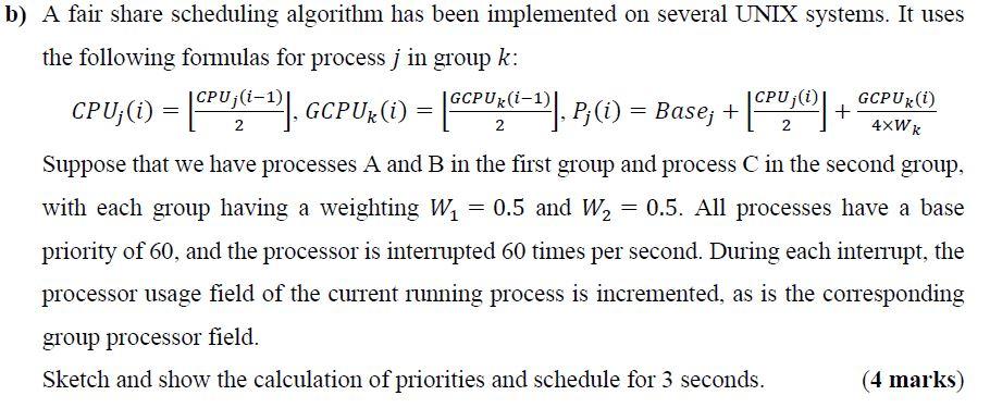 Solved b) A fair share scheduling algorithm has been | Chegg.com
